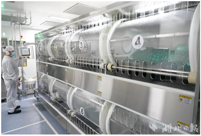 2月17日,經(jīng)過嚴(yán)格的防控、消毒措施,穿戴好防護用具和潔凈工作服,湖北日報記者進入人福普克藥業(yè)(武漢)有限公司的潔凈生產(chǎn)車間。